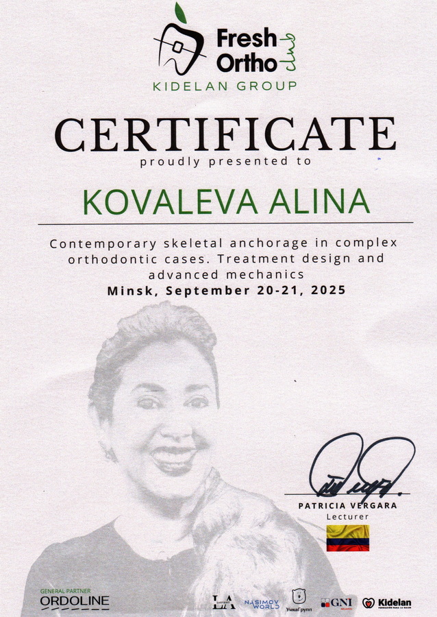 2025 г. – «Contemporary skeletal anchorage in complex orthodontic cases. Treatment design and advanced mechanics» (Patricia Vergara).