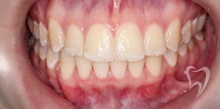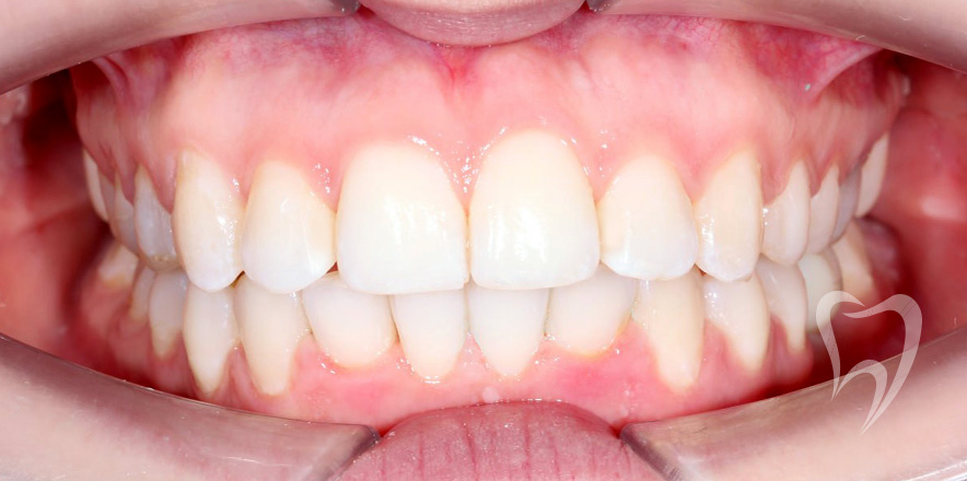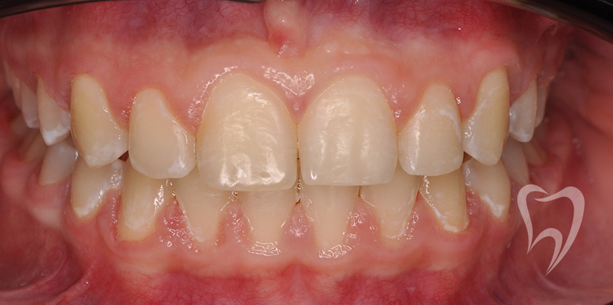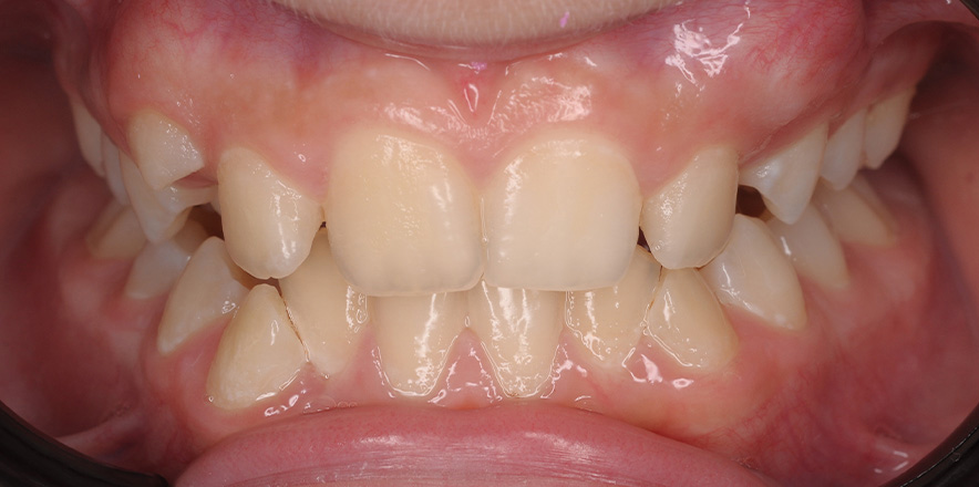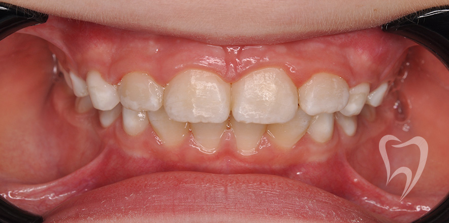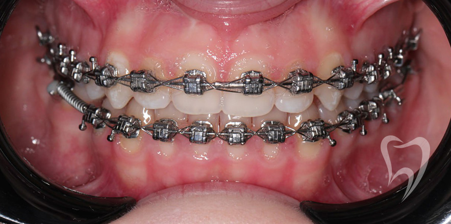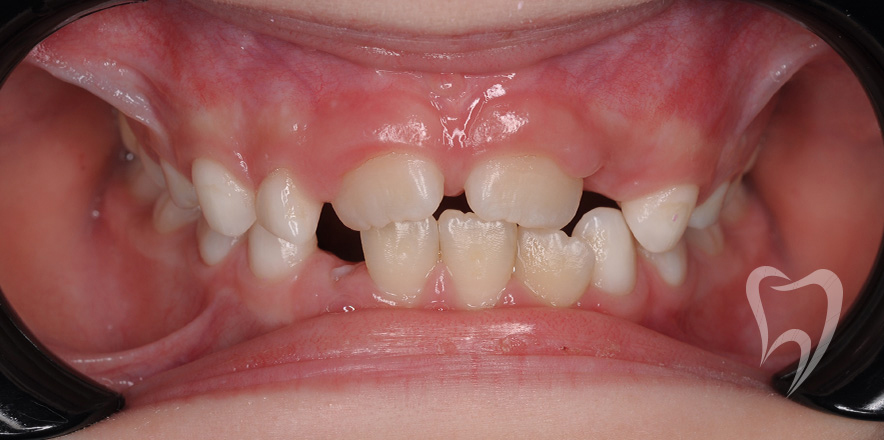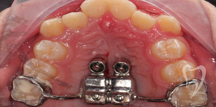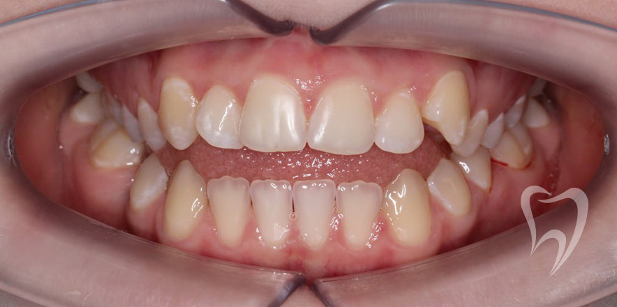 Сменный прикус. Лечение на аппарате Хаас с целью расширения верхней челюсти, создания места для боковых резцов. Нормализация положения зубов с применением частичной брекеты системы.