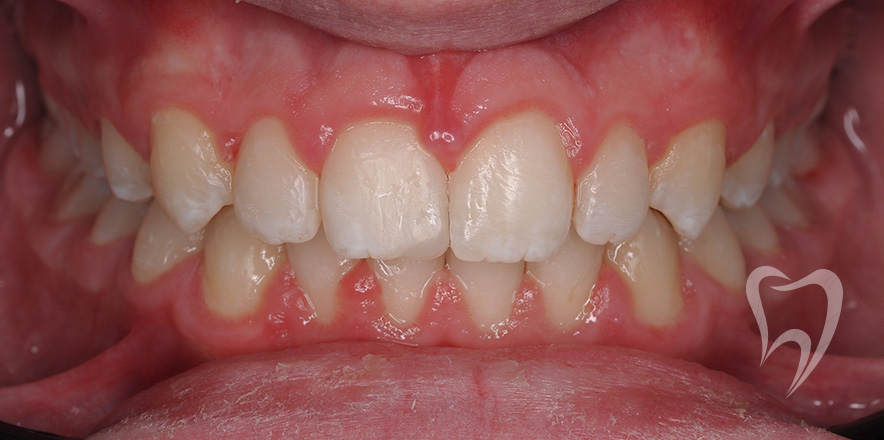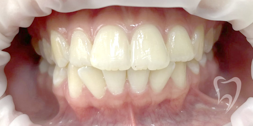 Жалобы на затрудненное носовое дыхание, скученное положение зубов, диагноз: сужение зубных рядов, скученность зубов, лечение с помощью аппарата MARPE (МАРПЭ) с опорой на небные минивинты и самолигирующей брекет-системы.