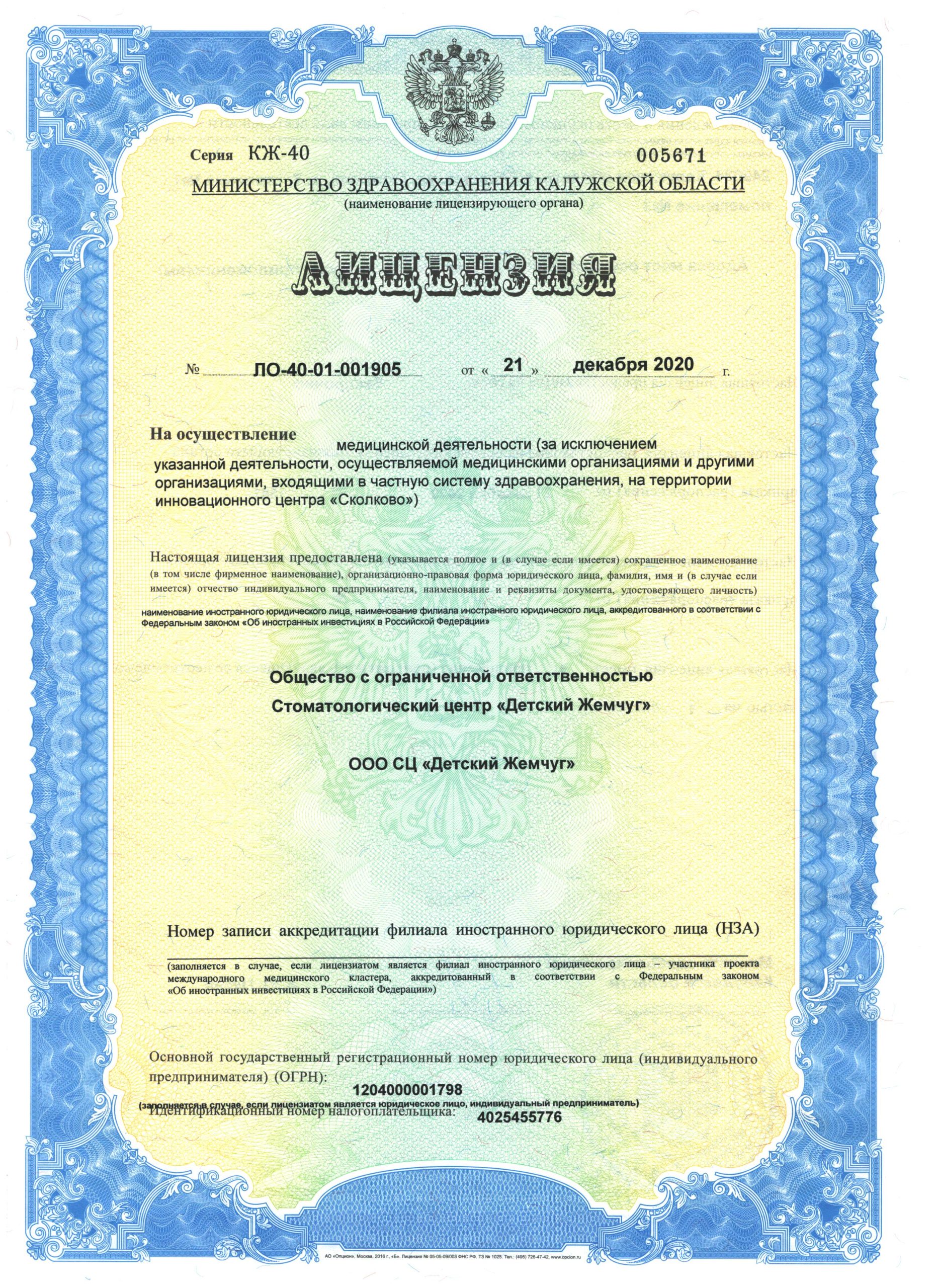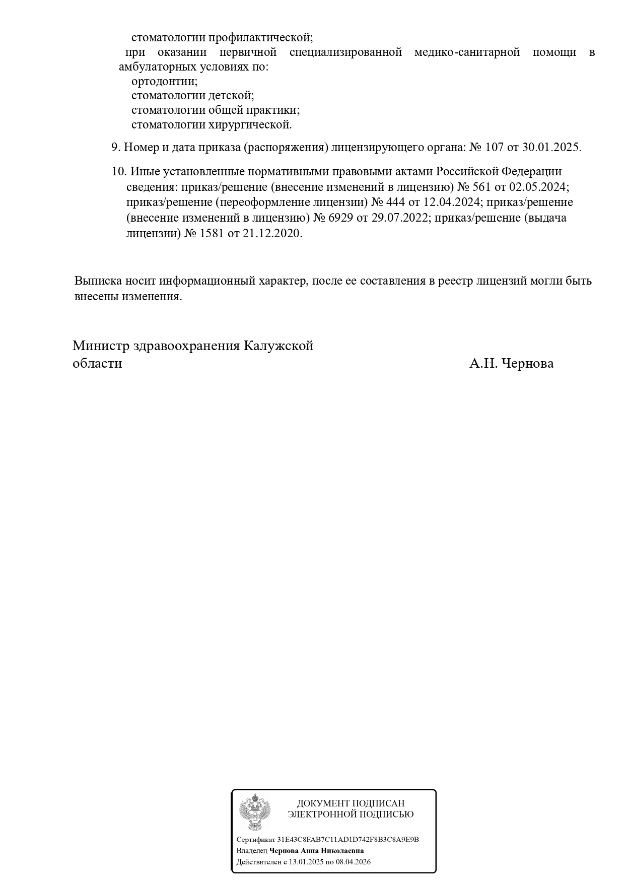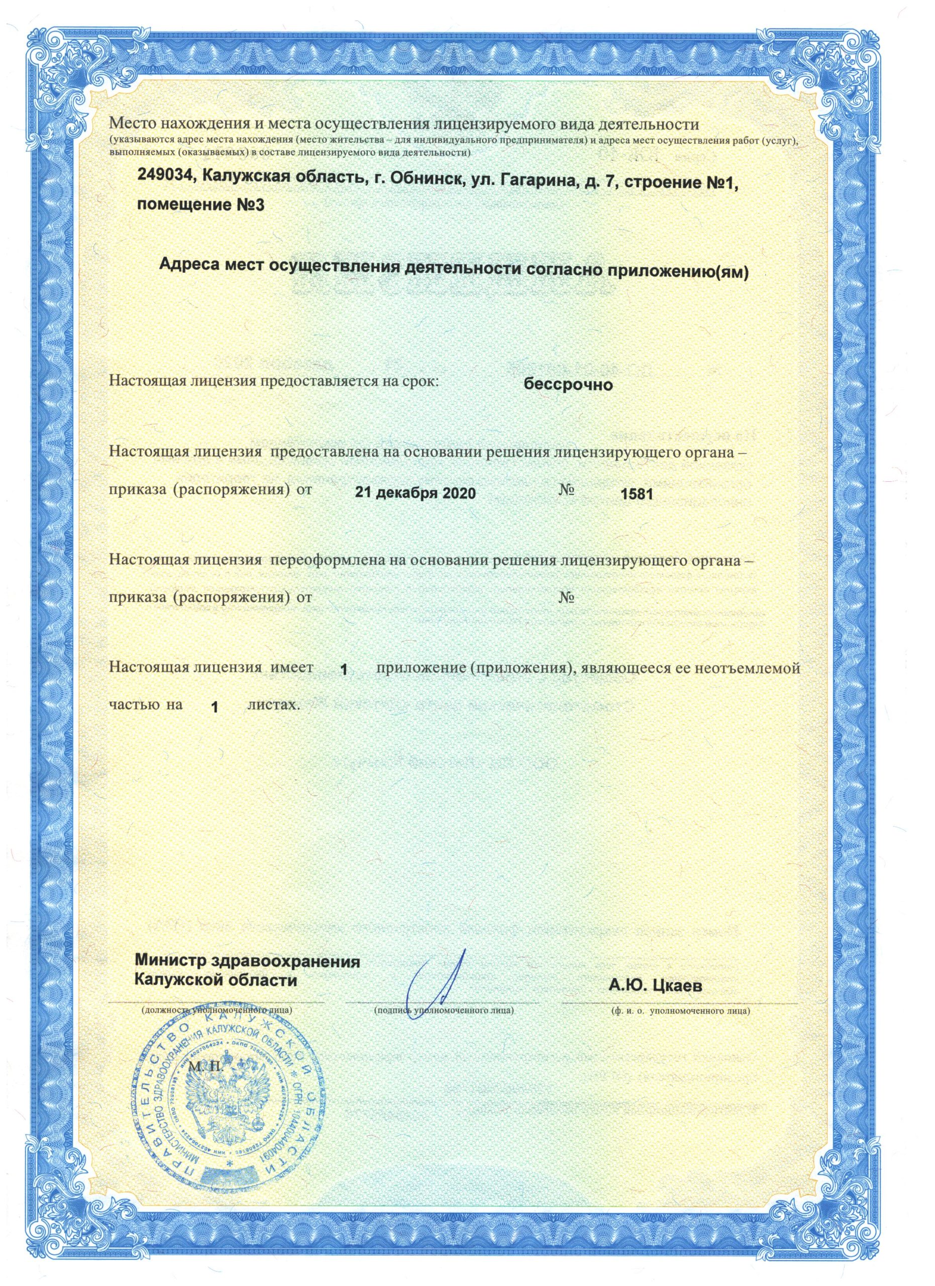 4. Лицензирующий орган: Министерство здравоохранения Калужской области (248016, г. Калуга, ул. Пролетарская, д.111, тел. +7 (4842) 71-90-02).